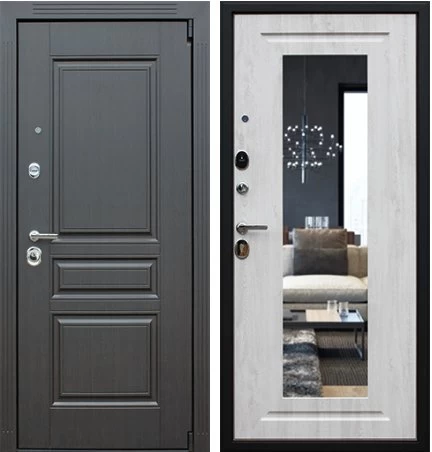 Дизайнерская входная Дверь Гермес NEW с зеркалом ELIT класса Люкс с несколькими листами стали, звукоизоляцией и теплоизоляцией. Утепленный короб и полотно защитят от сквозняков и шумов. Модель не только надежная, комфортная, защищенная и высочайшего качества, но и очень красивая! Будет отлично сочетаться с интерьером дома, квартиры или офиса. Сейчас действует выгодное предложение по цене: 58 399 руб.